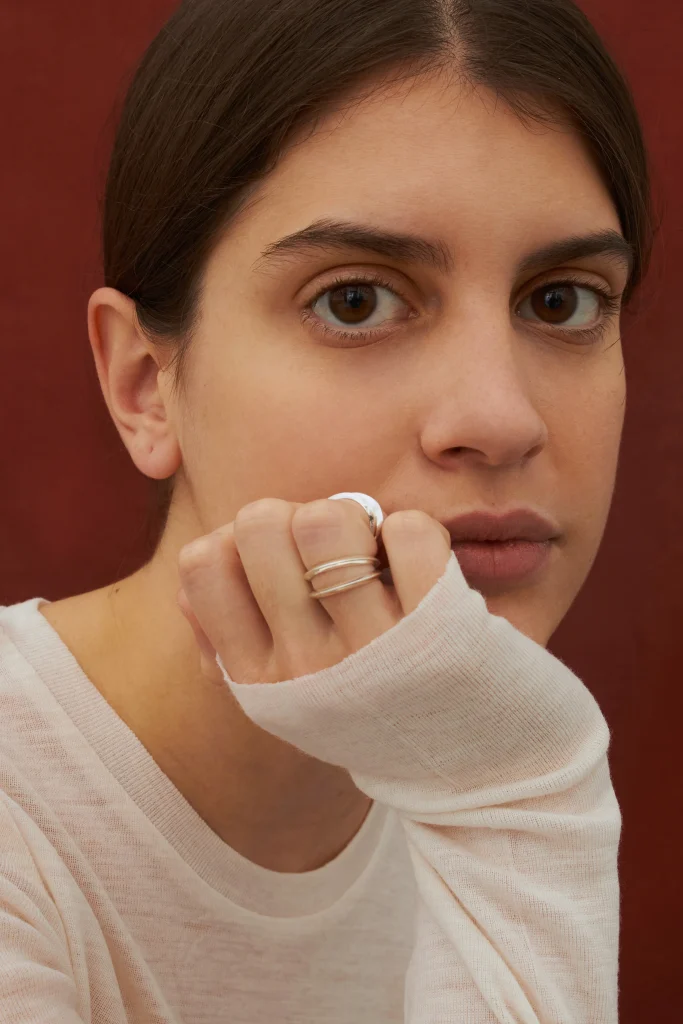 Un anillo para jugar a combinarlo con otros o con este mismo, seguidos o en distintos dedos de la mano. También te proponemos un set, que incluye el anillo y el earcuff de la colección Ría, llevado como anillo de falange o en el meñique.