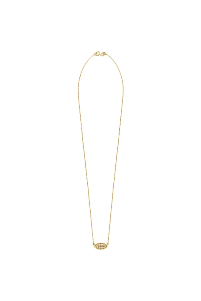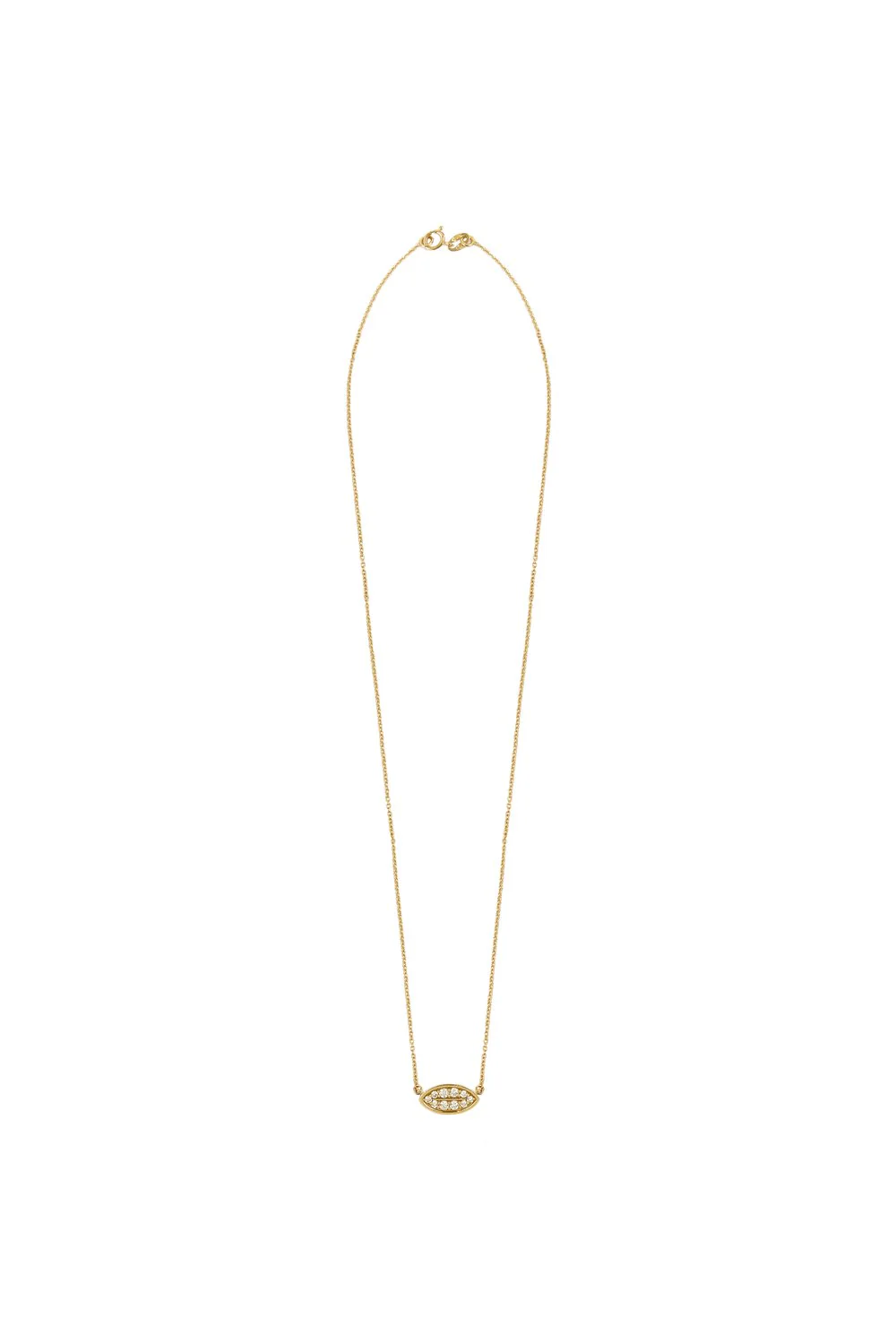 Colgante con motivo en forma de barca y cadena maciza. Hecho a mano en oro amarillo de 18 quilates y diamantes blancos talla brillante por un total de 0,23 quilates.
