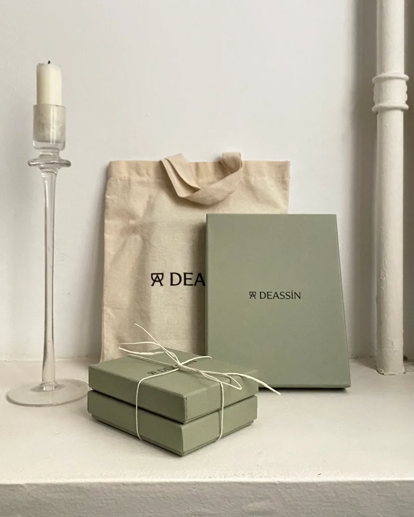 Tu pieza llegará empaquetada en un saquito de algodón dentro de un caja rígida de cartón. Nuestro packaging es original y está fabricado en España en materiales naturales y reciclables.